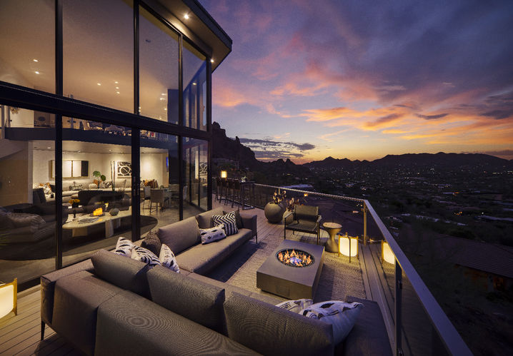 This architectural masterpiece on Camelback Mountain is a 6500 square foot, four bedroom home with media room and several lounge areas. The client’s directive was to make the residence accommodate not only their personal usage, but also as the premiere home for the Sanctuary Resort’s private residence rental program.
